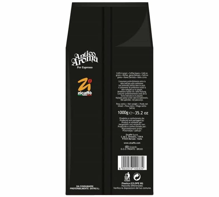 Antico Aroma de Zicaffè est un café en grain né de l’assemblage de cafés arabica lavés et de robusta soigneusement sélectionnés. Un café en grain italien riche en saveurs grâce à ses notes de fleurs, de pain grillé et de chocolat en arrière-gout. C’est le café idéal pour les amateurs de cafés fort comme dans les bars. Conditionnement : 1 kg.