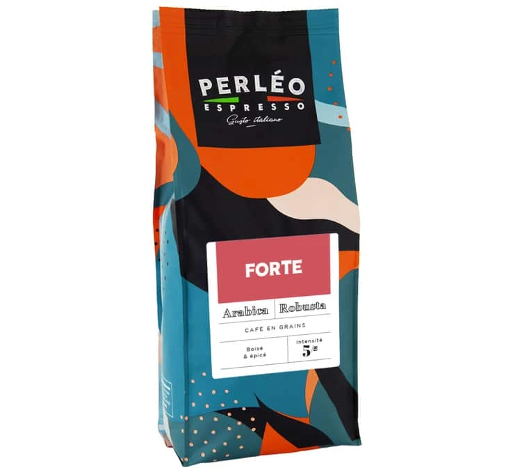 Découvrez le mélange Forte, composé d’arabica et de robusta, de Perleo Espresso. Il vous offrira des arômes intenses et puissants, grâce à sa torréfaction » à l’italienne ». Les amoureux de l’expresso apprécieront les notes boisées et épicées qui s’en dégagent, comme celles de pain grillé et des herbes sauvages. Conditionnement : paquet de 1kg