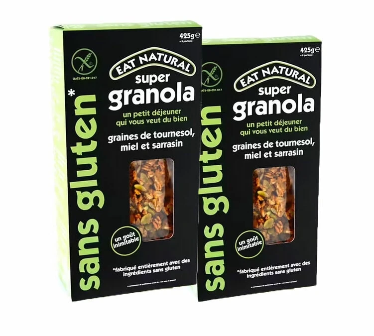 Le sarrasin fait parfaitement l’afffaire pour remplacer les céréales de blé et peut donc convenir aux intolérants au gluten. Ce granola est donc fabriqué entièrement à partir d’ingrédients sans gluten.