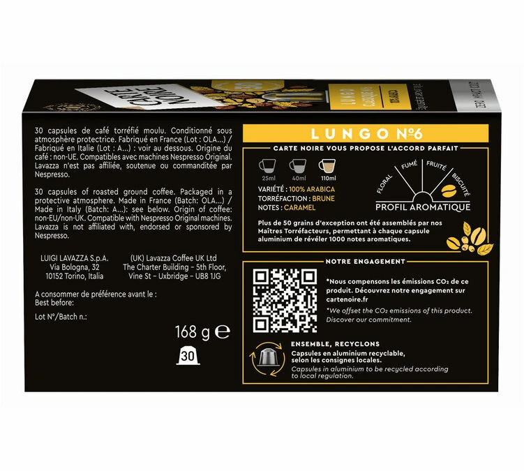 30 Capsules compatibles Nespresso®- Espresso Lungo n°6 – CARTE NOIRE