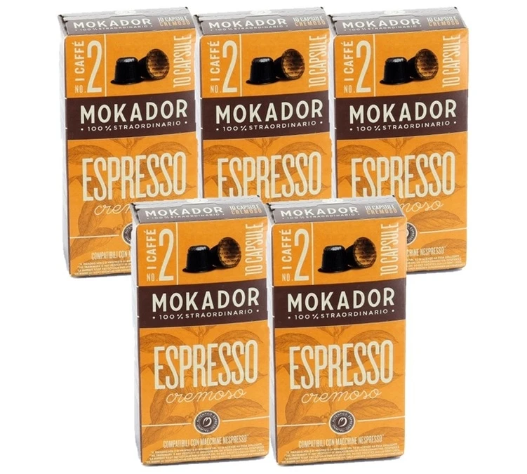 Dégustez ces 50 capsules compatibles Nespresso® Mokador Castellari . Ces capsules Cremoso de Mokador Castellari sont composées d’Arabica et de Robusta. Capsules non surremballées. Conditionnement : 50 boîtes de 10 capsules.
