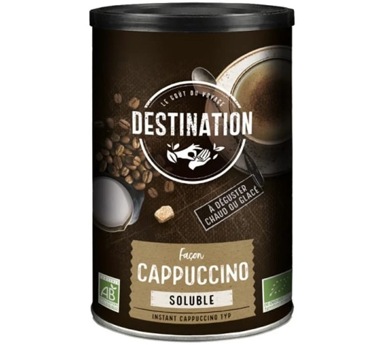 Laissez-vous tenter par la gourmandise et l’onctuosité de cette boisson instantannée bio de Destination. Les notes intenses du café Destination alliées à la mousse épaisse et riche avec une pointe de sucre de canne sauront vous séduire. Le cappuccino soluble bio de Destination est idéale à tout moment de la journée.