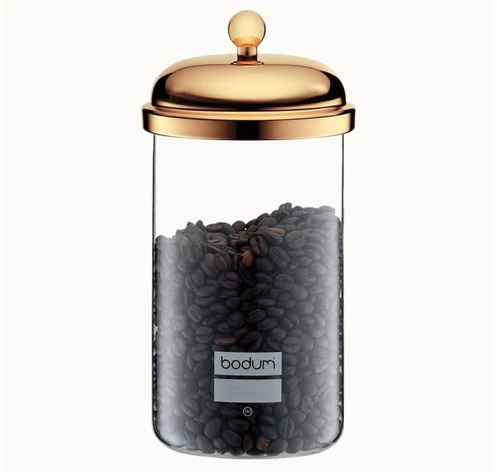 Découvrez cette boîte de conservation Chambord au couvercle de couleur plaqué or, de la marque Bodum et d’une contenance de 1 litre.