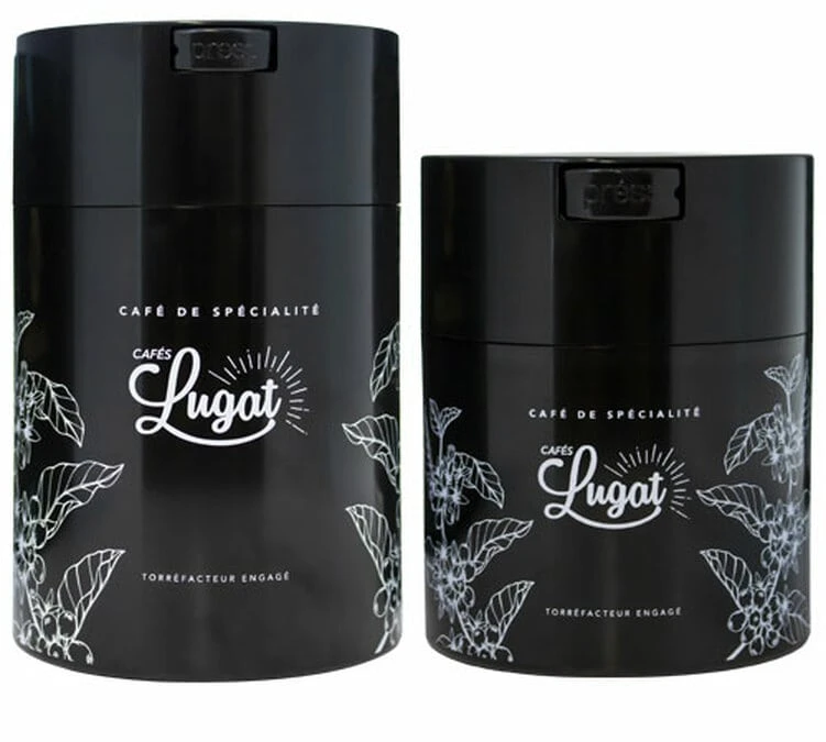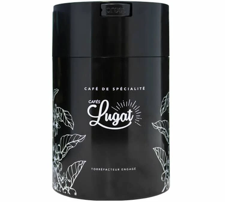 La boîte conservatrice Cafés Lugat est un récipient scellé sous vide , une boîte de stockage pour votre café qui maintient le café au frais jusqu’à 3 fois plus longtemps que les conteneurs classiques. La couleur noire de la boîte permet de conserver bien plus longtemps votre café car il sera à l’abris de la lumière.