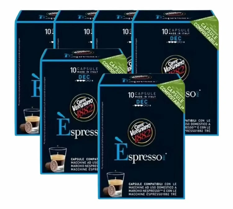 Ces capsules compostables Espresso Deca de Caffè Vergnano présentent des notes fruitées et boisées. Capsules compatibles avec les machines compatibles Nespresso®