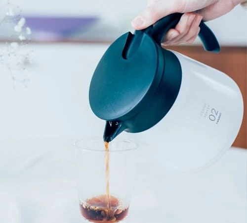 La carafe isotherme V60 de Hario 55 est équipée d’une double paroi sous vide en inox haute qualité, pour une excellente conservation au chaud (90 minutes).