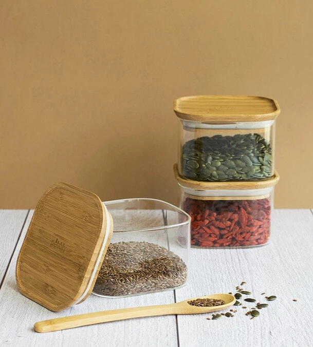 Ces boîtes sont très tendance, leur style scandinave en bois clair de bambou et en verre transparent habillent votre intérieur, et subliment les aliments que vous rangez dedans.
