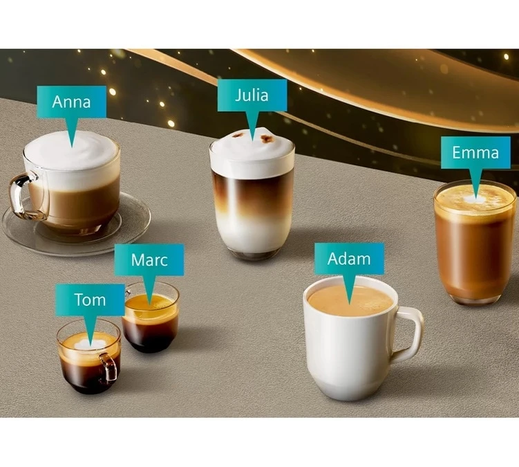 10 profils d’utilisateur pour une utilisation familialeLa Siemens EQ.9 Plus S700 Dark Inox est particuliĂšrement simple d’utilisation et permet d’aller Ă l’essentiel : un Ă©cran TFT couleur permet une navigation efficace et une rĂ©alisation de boissons personnalisĂ©es. RĂ©alisez 1 ou 2 boissons cafĂ© simultanĂ©ment  facilement et surtout trĂšs rapidement (40 secondes) grĂące au systĂšme « Coffee Direct ». De plus, paramĂ©trez  jusqu’Ă 10 profils utilisateurs  trĂšs facilement pour que chacun puisse dĂ©guster ses boissons prĂ©fĂ©rĂ©es. De plus, son mode Barista vous permettra de personnaliser chacune des boissons et d’aller toujours plus loin dans la dĂ©gustation de cafĂ©. |