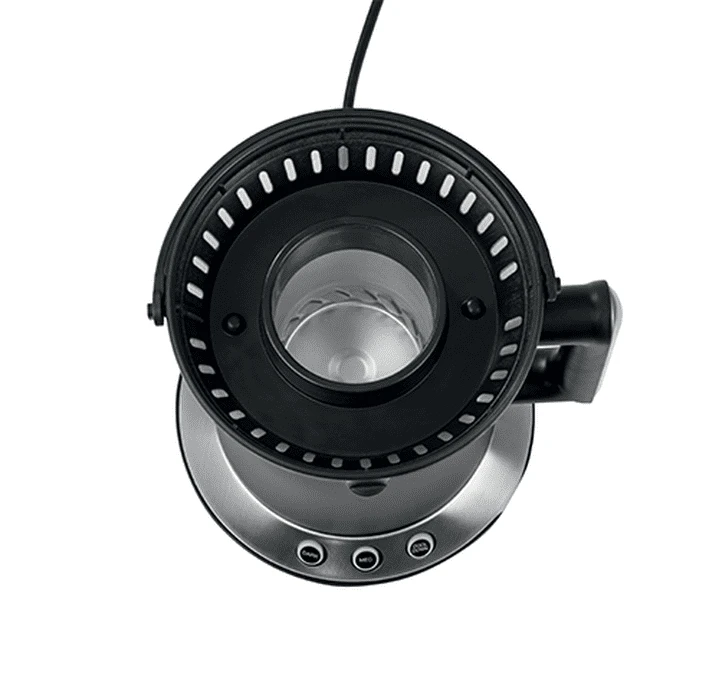 La température augmente par palier jusqu’à atteindre la température idéale pour la torréfaction de votre café (200°c maximum). Lors de la torréfaction de votre café vert, les peaux des cerises sont séparées des grainds de café, tombent dans le tamis à cuticules et sont récoltées dans ce récipient prévu spécialement à cet effet. Vous récupérez ainsi d’une partie le café torréfié et d’une autre part les peaux des cerises, prêtes à être mises au compost.